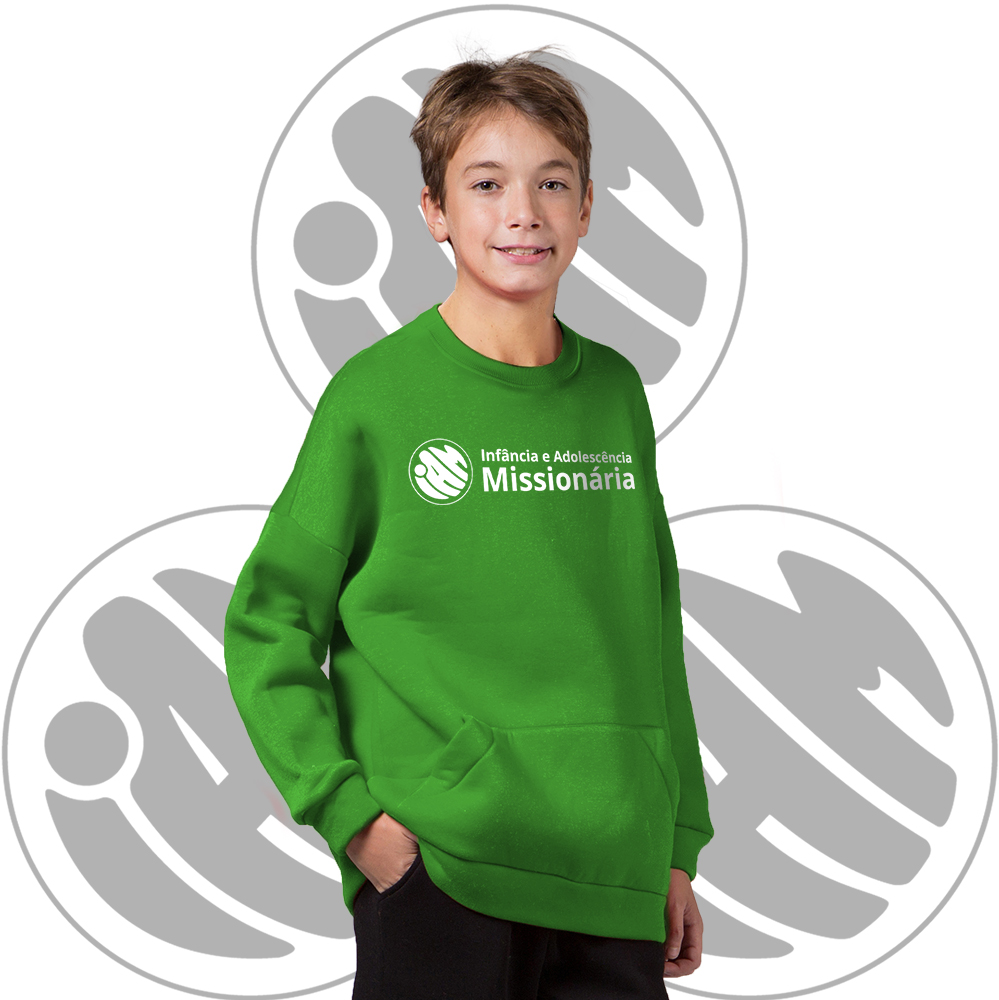 Moleton confeccionado em malha de algodão. Modelo com caimento reto, estampado, gola redonda.